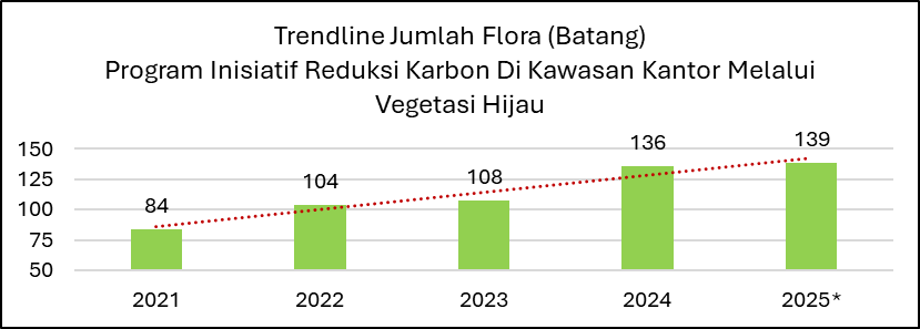 Gambar 2. Tren Jumlah Flora (Batang) Program Reduksi Karbon Di Kawasan Kantor Melalui Vegetasi Hijau