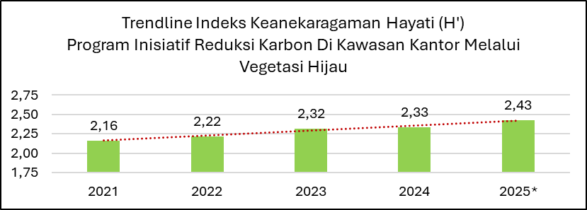 Gambar 3. Tren Indeks Keanekaragaman Hayati (H’) Program Reduksi Karbon Di Kawasan Kantor Melalui Vegetasi Hijau