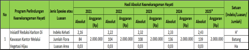 Tabel 1. Data Absolut Program Reduksi Karbon Di Kawasan Kantor Melalui Vegetasi Hijau