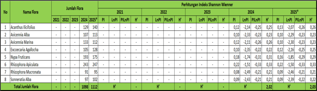 | Spesies | Rhizopora Apiculata | Indeks Kehati Shannon-Wiener |